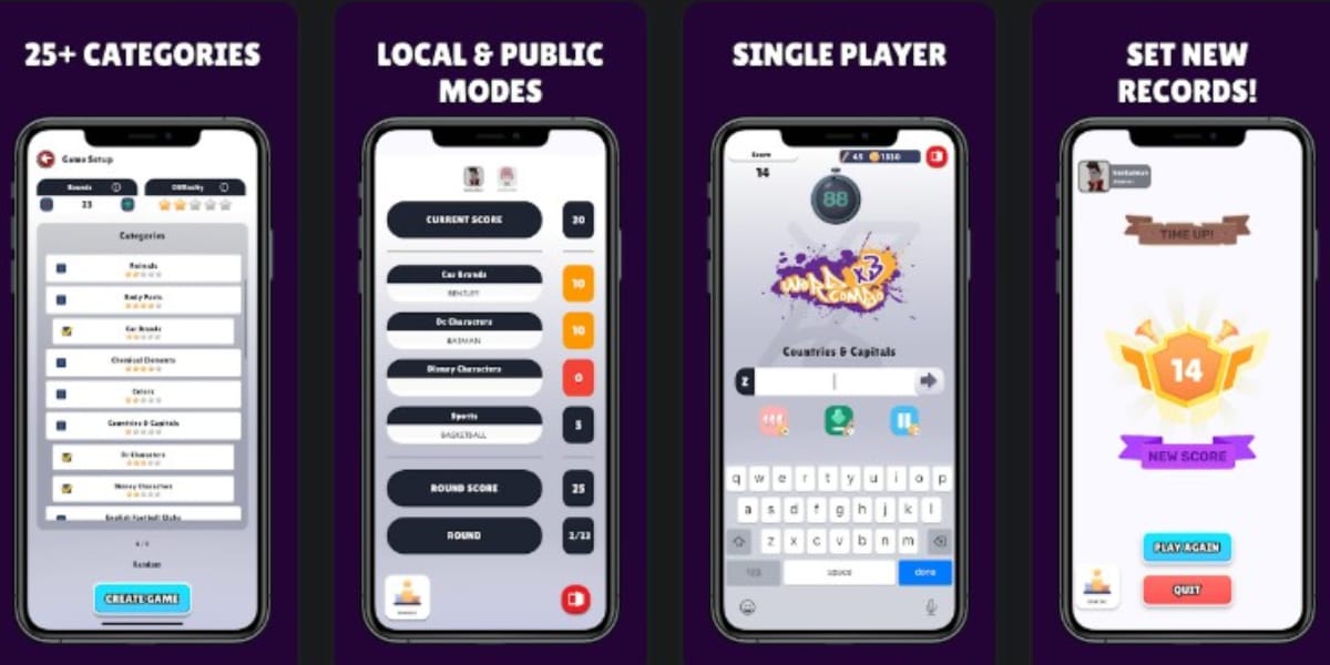 A fast-paced word game inspired by childhood classics like Scattergories. Players compete solo or online by typing words that match given letters and categories, racing against time across multiple multiplayer and leaderboard-driven modes.