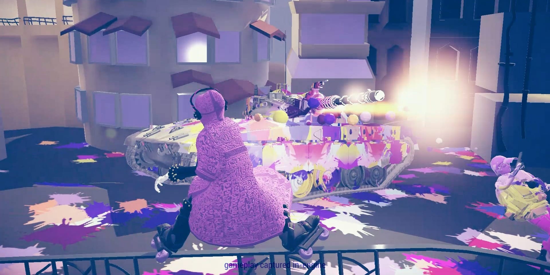 A fast-paced skating action game inspired by Jet Set Radio and Splatoon. Players explore urban environments, perform graffiti-based objectives, evade soldiers, and navigate rooftops while engaging with culturally grounded, episodic storytelling.